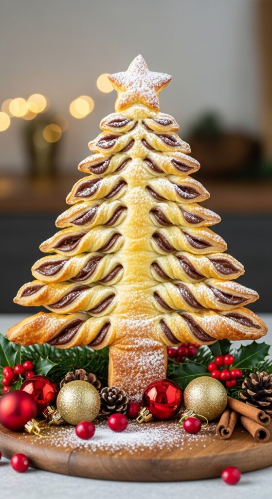 This is the most adorable, no-bake dessert on the list. Flaky puff pastry, rich chocolate-hazelnut spread, and a dusting of powdered sugar come together to create an edible Christmas tree.