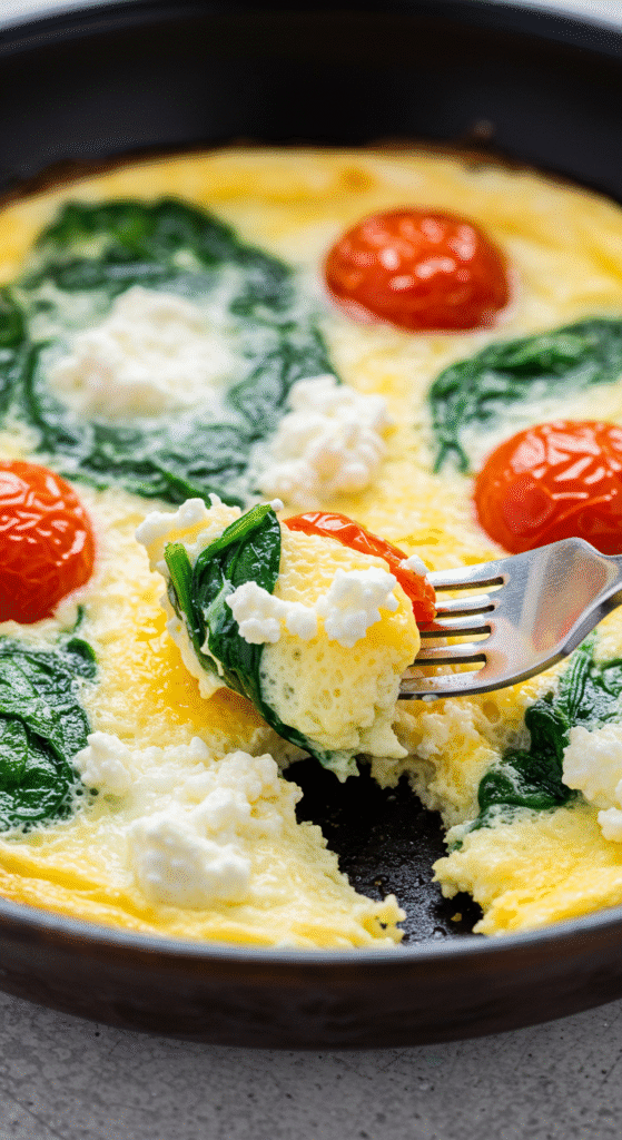 • Method: Whisk your eggs with a big spoonful of cottage cheese. Scramble them in a pan with a little butter. The cottage cheese melts in, making the eggs incredibly creamy and adding a huge protein boost. Toss in a handful of spinach and halved tomatoes at the end just to wilt them.