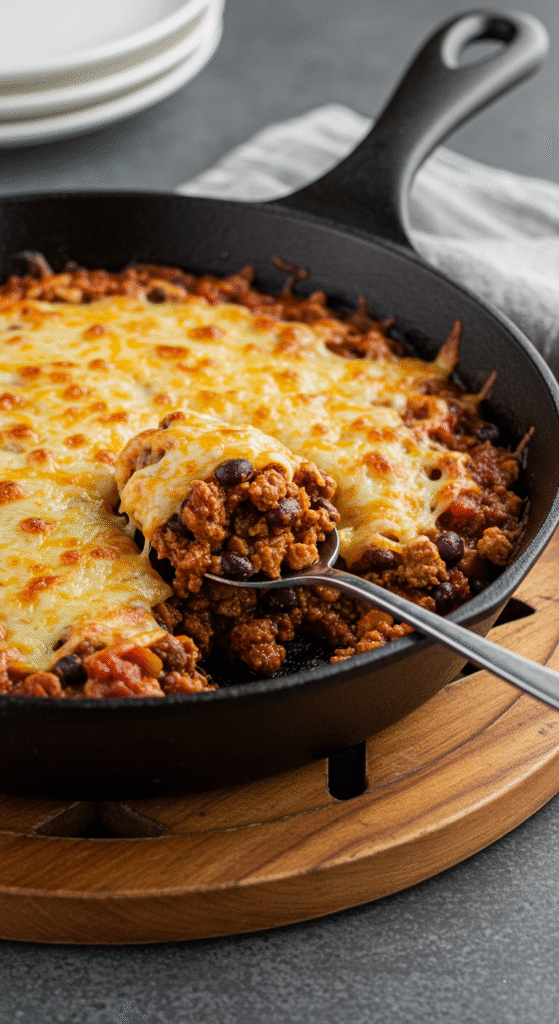 • Ingredients: Ground turkey, salsa, black beans (canned, drained), shredded cheese, taco seasoning.