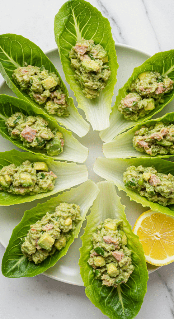 • Ingredients: Canned tuna, avocado, red onion, lemon, lettuce (like butter or romaine).