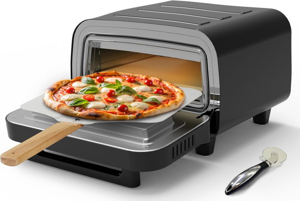 The double-insulated housing keeps it safe for indoor use, and the included starter kit (peel, cutter, and stone) means you’re ready to cook right away. It’s versatile, too — bake, broil, roast, or even proof dough.