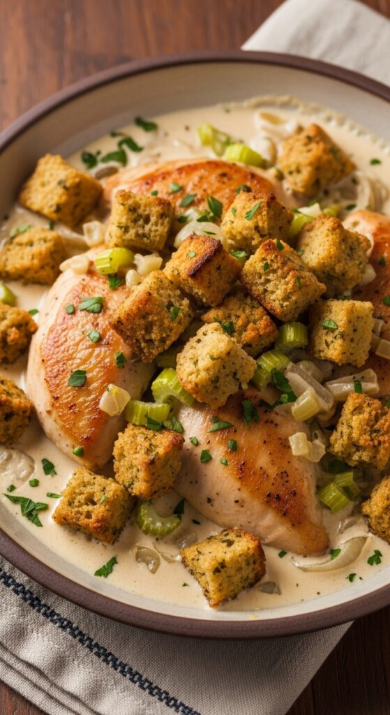 The stuffing soaks up all the juices from the chicken and becomes a savory, creamy, herby topping. It’s a one-dish wonder that requires zero thought.