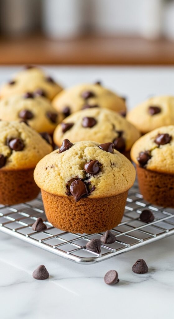 - Bake to Perfection. Divide the batter evenly among your prepared muffin cups. Sprinkle the reserved chocolate chips on top. Bake for 18-22 minutes until golden and a toothpick comes out clean.