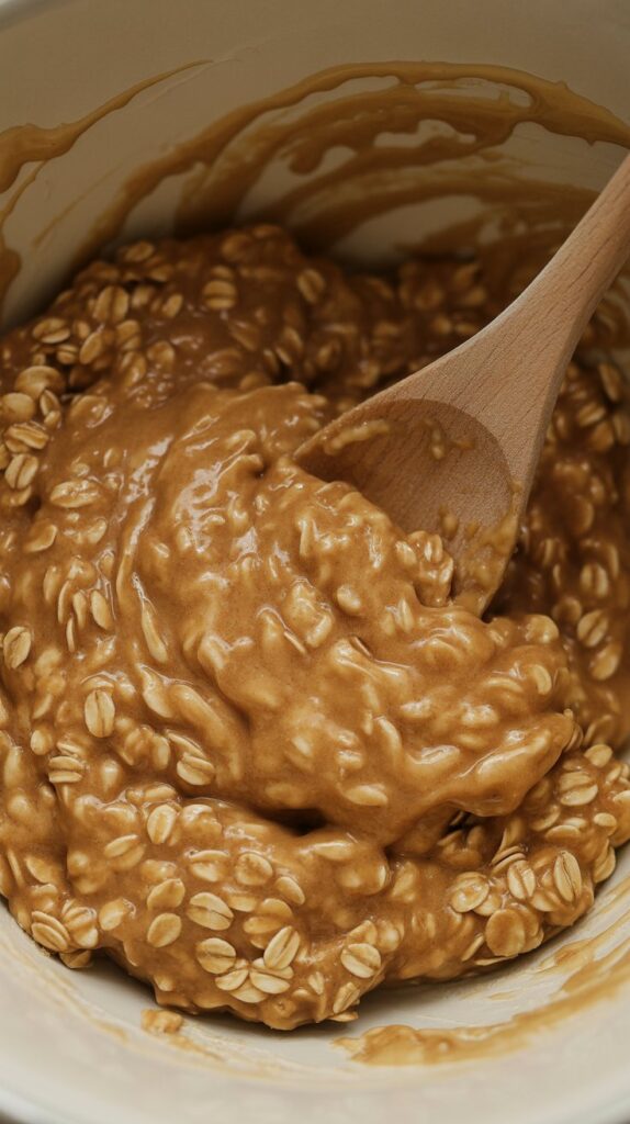 - Mix the “Dough.” In a medium bowl, combine the rolled oats and melted butter. Pour in the entire can of sweetened condensed milk. Stir everything together until it’s one gloriously sticky, oaty mess.