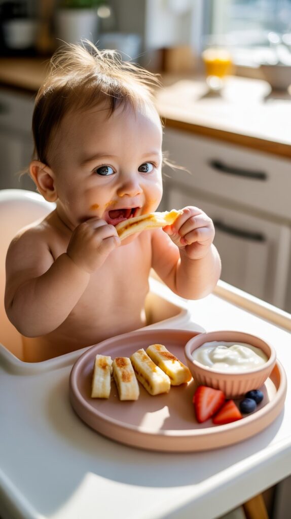 • The Classic: Cut into appropriate-sized strips (finger-shaped) for easy grabbing. Let your baby feed themselves and embrace the mess.