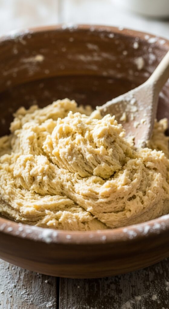 - Bring in the Cream. Pour in the 1 cup of heavy cream. Grab a wooden spoon or spatula and stir until a shaggy, slightly sticky dough forms. It might look a little dry at first, but keep stirring. The key is to stop as soon as it comes together. No overmixing!