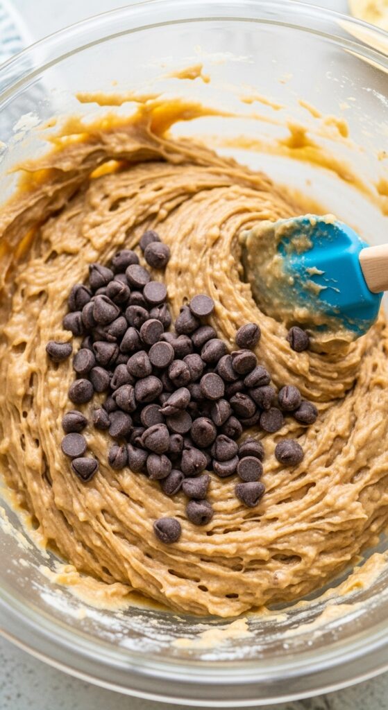 3. Mix Everything. Add the cake mix, chocolate chips, and cinnamon (if using) to the mashed bananas. Stir until just combined. A few dry streaks are fine! Do NOT overmix.