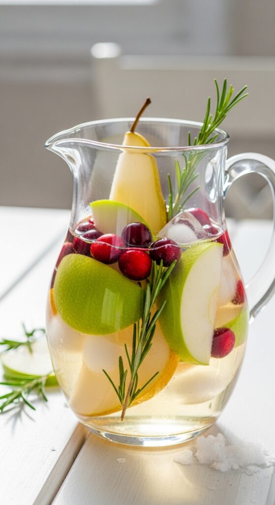 Who says punch is just for summer? This winter white sangria is crisp, fruity, and looks like a snowy dream in a glass. It’s a refreshing break from all the heavy, spiced drinks.