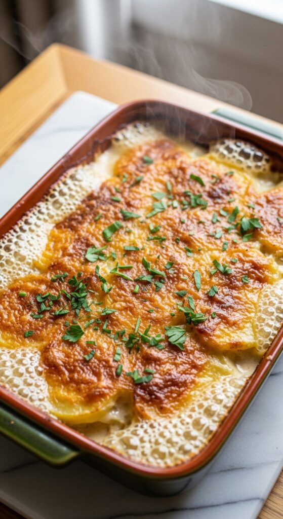 - Bake: Cover with foil and bake at 375°F (190°C) for 45 minutes. Uncover and bake for another 20-30 minutes until the top is golden and the potatoes are tender.