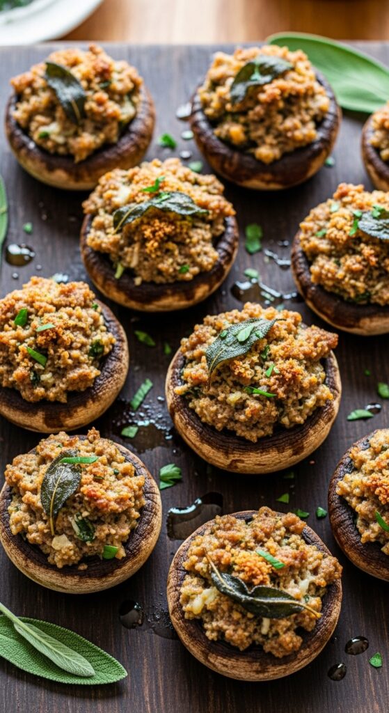 - Stuff and Bake: Spoon the filling generously into each mushroom cap. Bake at 375°F (190°C) for 20-25 minutes until the mushrooms are tender.
