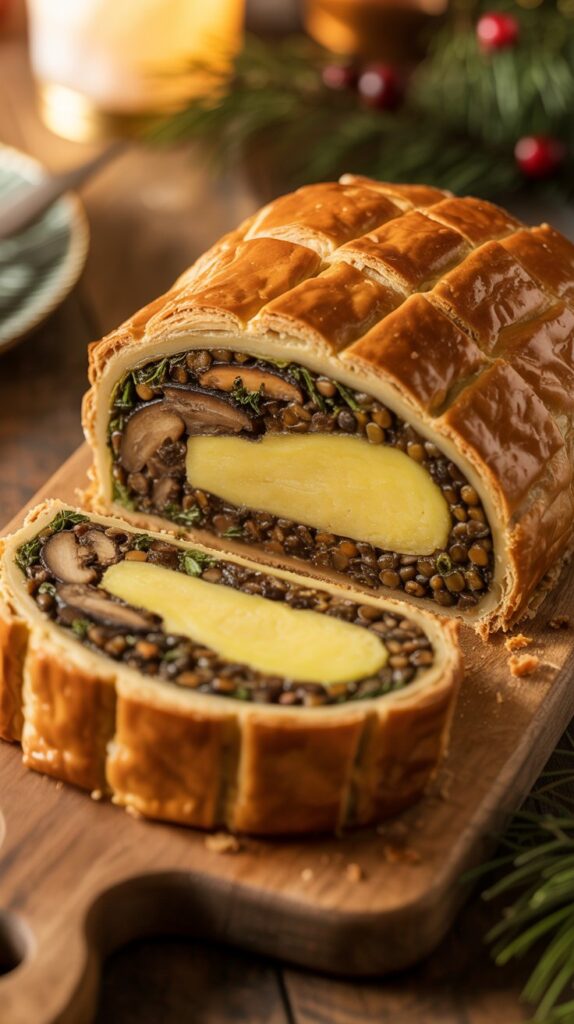 This is your centerpiece. The one that makes everyone’s jaw drop. Flaky, golden puff pastry wrapped around a rich, meaty, and deeply savory filling of lentils, walnuts, and mushrooms. It’s elegant, satisfying, and 100% plant-based magic.