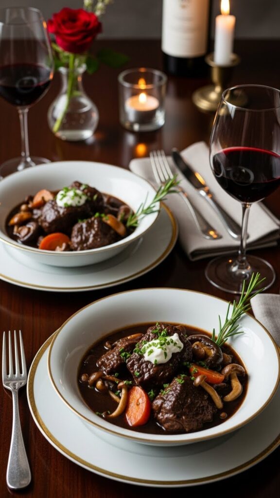 2. The “Fancy Date Night” Red Wine & Mushroom Stew for Two