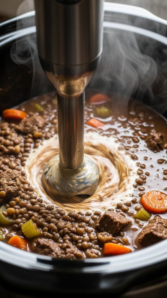 5. Thicken (The Healthy Way): For a thicker stew, use an immersion blender to pulse just a few times right in the pot, or mash some lentils against the side. This creates a creamy body without flour or butter.