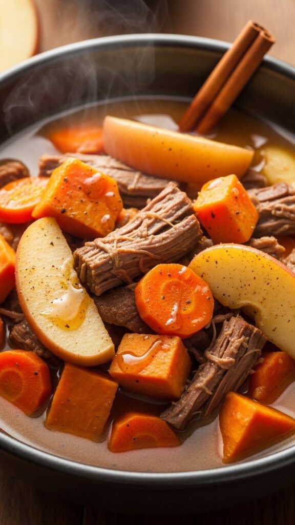 Don’t knock it till you try it. The sweet potatoes break down slightly, creating a naturally thicker, velvety broth. The apples practically melt away, adding a subtle fruitiness. The smoked paprika and cinnamon create a warm, complex spice profile. It’s a cozy, autumnal take on beef stew with potatoes that will surprise and delight you.