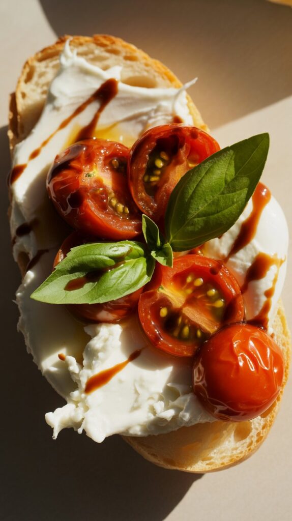 1. The “Wow Factor” Starter: Burst Tomato & Burrata Crostini