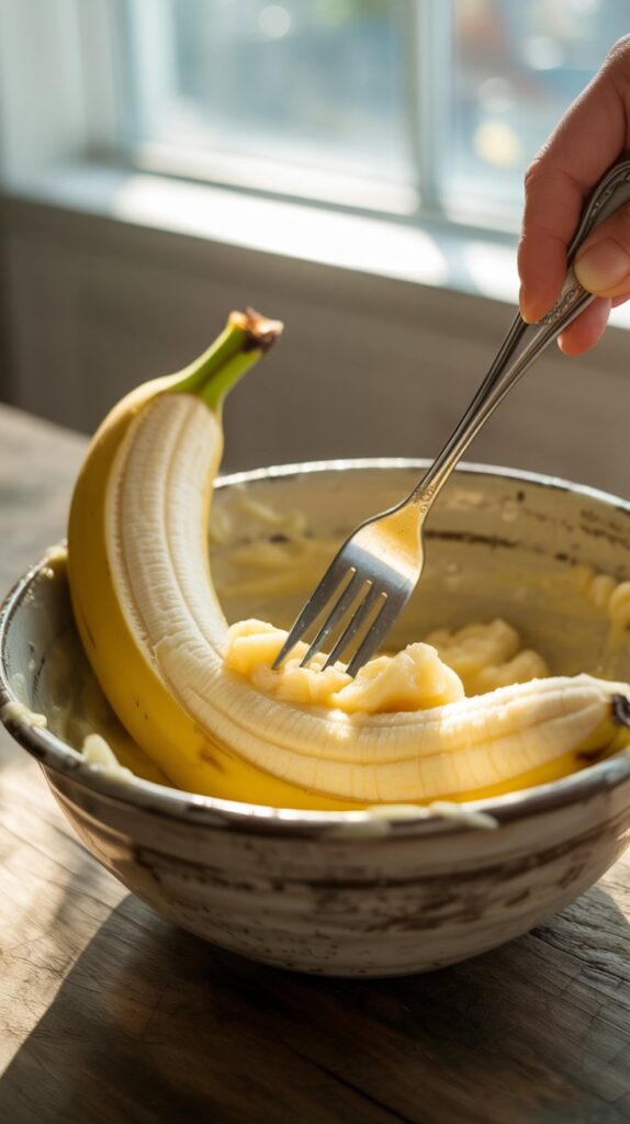 Peel that banana and plop it into a medium-sized bowl. Now, get aggressive with it. You want to mash it until it’s basically a smooth liquid. No lumps! Use a fork, a potato masher, or the back of a whisk. I find a little bit of controlled rage first thing in the morning is quite therapeutic.