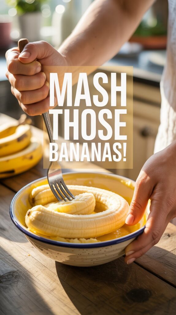 Peel your bananas and drop them into a medium bowl. Now, channel any lingering morning grumpiness and mash them. I mean, really go for it. You want a smooth, liquidy paste with zero lumps. A fork is your best friend here. Think of it as your pre-breakfast workout.