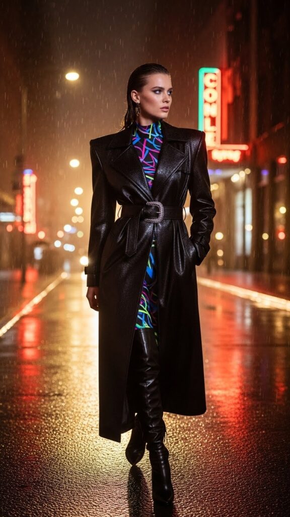 Trenches are classic, but the 80s luxury version was all about drama. Think a longer length, a more defined shoulder, and most importantly, a wide, architectural belt to cinch the waist into an hourglass silhouette.