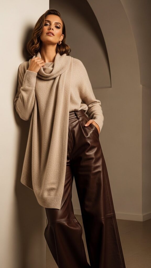 8. The Cowl Neck Knit & Wide-Leg Leather Pants