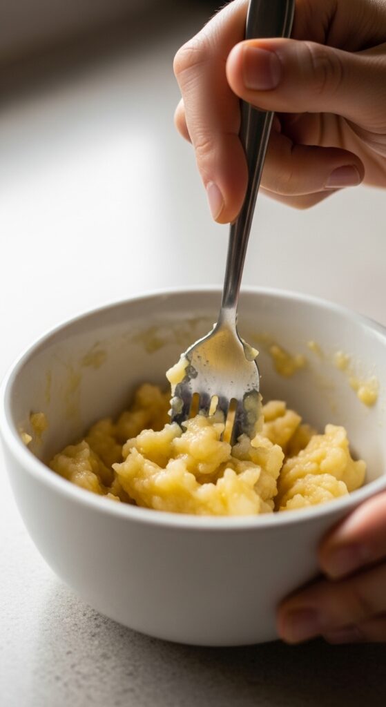 Peel that banana and drop it into a medium bowl. Now, take your fork and go to town. You want to mash it until it’s basically a smooth, lump-free puree. A few tiny lumps are okay—this is a rustic, artisanal experience, right?