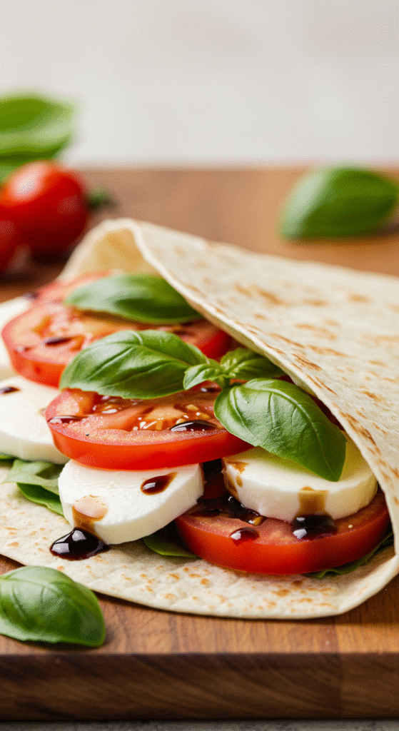 3. Caprese Salad Wraps (Healthy 5 Ingredient Lunch Idea)