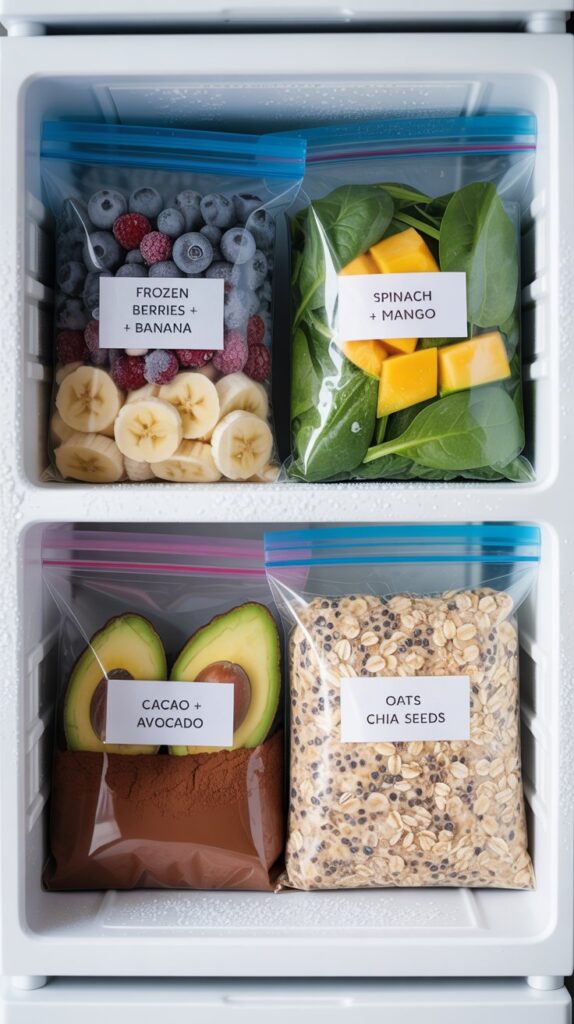 - Smoothie Packs: Pre-portion all your dry and frozen ingredients (fruits, veggies, boosters) into zip-top bags and freeze. Dump a bag in the blender, add your fresh liquid, and blend.
