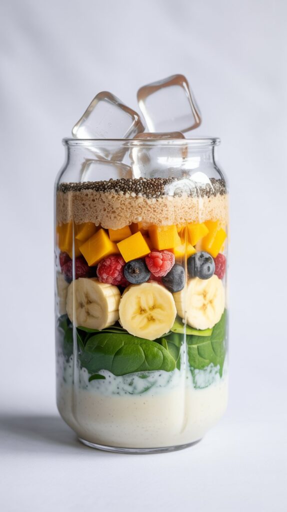 Refer to the 1-2-3-4-5 formula above. Liquid first, soft items next, frozen/hard items next, powders and boosters on top, ice last. This is the single biggest tip for a perfectly blended smoothie.