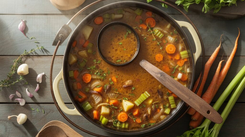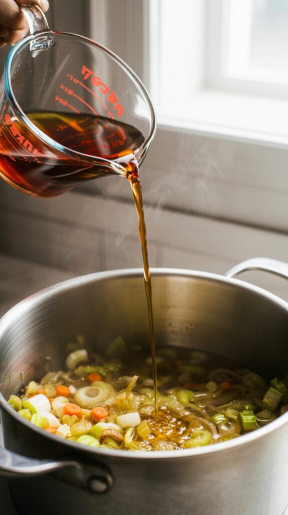 • For a Thickened Broth: Sprinkle in 2-3 tablespoons of flour over the cooked aromatics, stir to make a paste (a roux), and cook for 1-2 minutes to remove the raw flour taste.