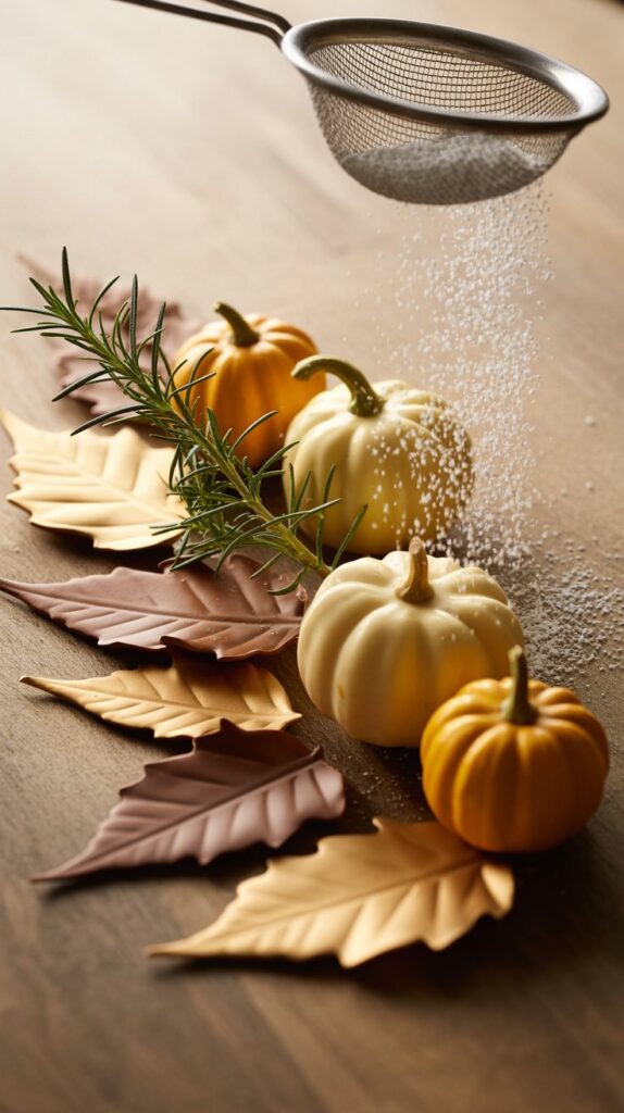 - Add your final garnishes (rosemary, mini pumpkins, powdered sugar).