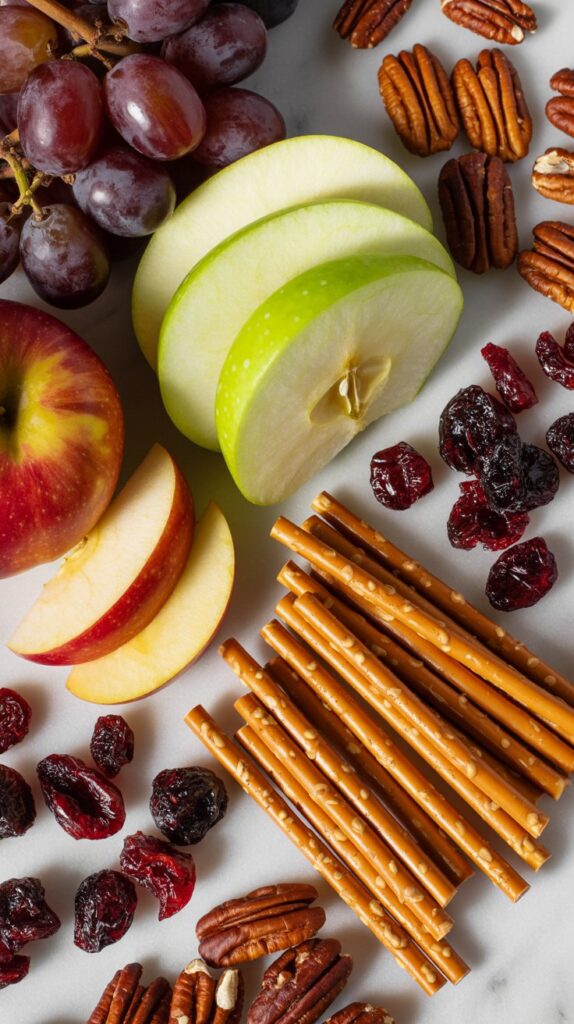 | Fresh Fruit | Apple Slices (Honeycrisp, Granny Smith), Pear Slices, Red Grapes, Pomegranate Seeds. | Adds bright color, freshness, and a tart contrast to the sweetness. Remember to coat apple/pear slices in lemon juice to prevent browning! |