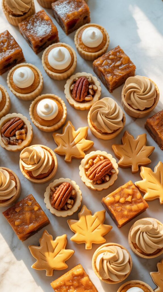 - Mini Pie Bites: Instead of full pies, use miniature tarts or small 4-inch pies in classic flavors: Pumpkin, Pecan, and Apple. You can buy these pre-made to save time, or use a muffin tin for homemade mini versions.
