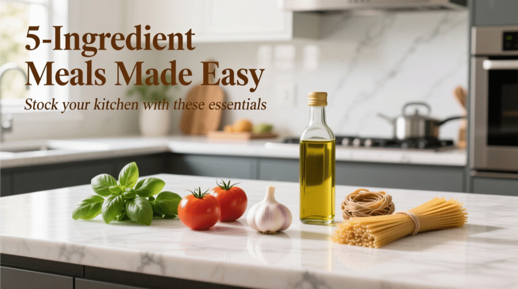 If you keep the right basics—like proteins, grains, canned goods, and seasonings—your kitchen can transform into a 5-ingredient meal machine. Think pantry staples, fridge essentials, and a few flavor boosters that make cooking fast, easy, and delicious.