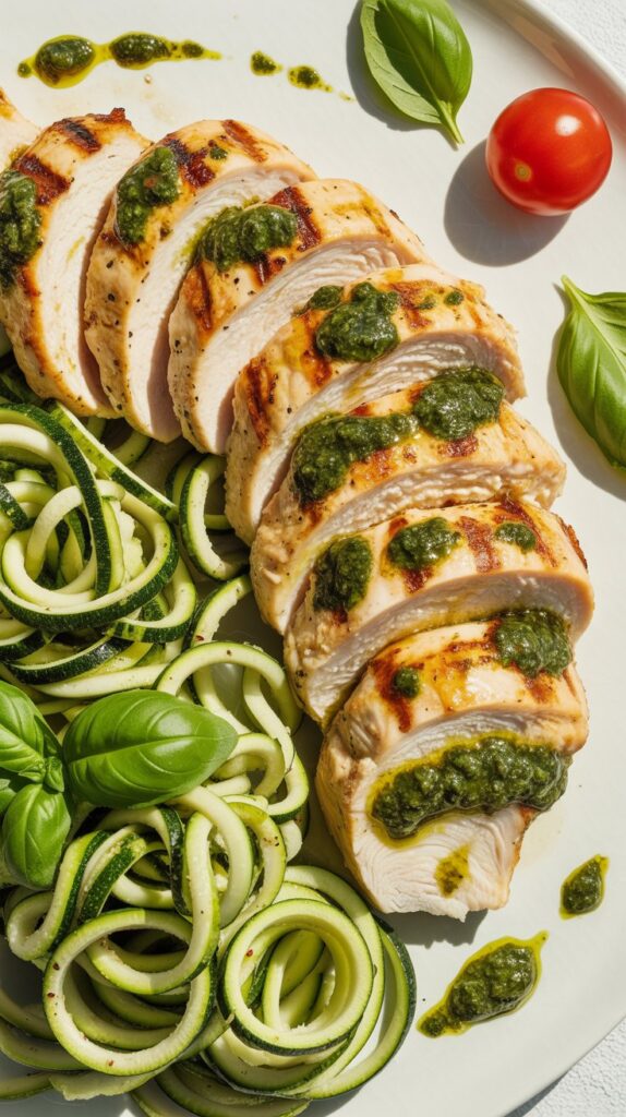 This is your go-to for a no-fuss, juicy dinner. Just spread a thin layer of your low calorie pesto over boneless, skinless chicken breasts. Bake at 375°F (190°C) for 20-25 minutes. The pesto locks in the moisture so you get perfectly tender chicken every time.
