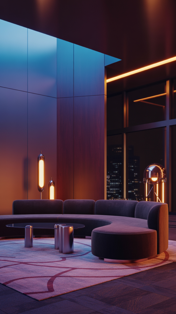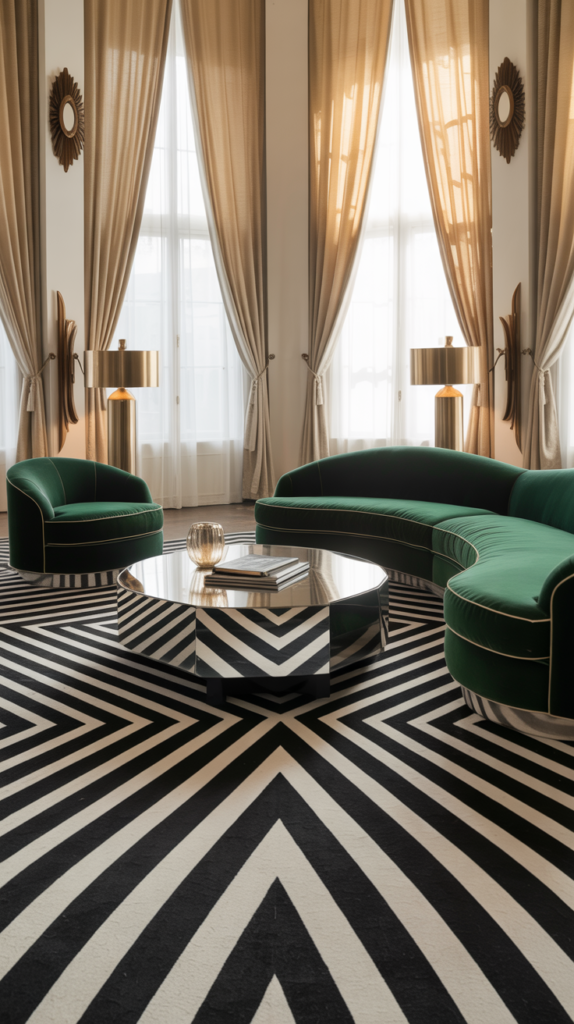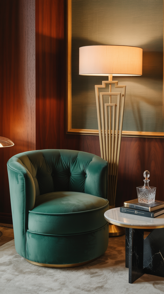 Imagine the roaring 20s glamour of Art Deco—all those sunbursts and sleek lines—but it got a software update. It’s less “Great Gatsby mansion” and more “futuristic, cozy lounge.” It’s bold, geometric, but deeply comfortable. Think lived-in luxury. If your current space feels a little… meh, this is your sign to give it a personality transplant. Let’s design a future you’ll love living in.
