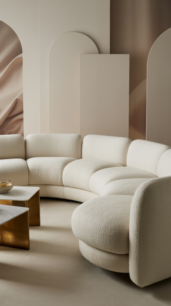 The 80s called, they want their sharp corners back. Neo Deco is all about soft geometry. A large, plush sectional with rounded edges in a textural fabric like bouclé or velvety chenille is your anchor piece.