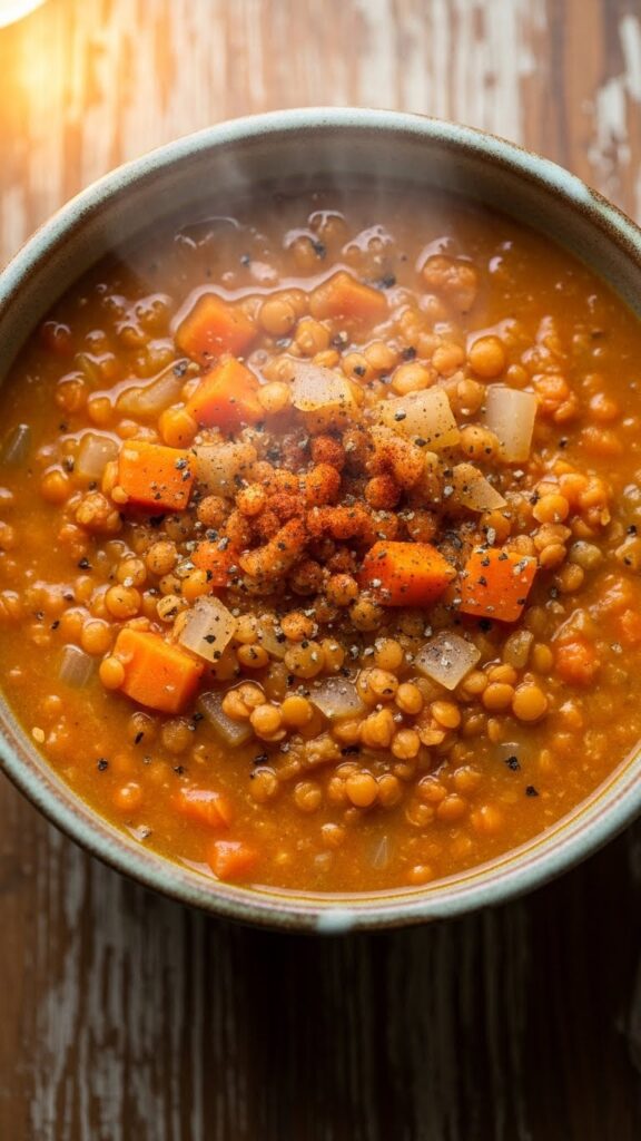 This is a hearty, one-pot meal that feels nourishing and comforting. Red lentils are the key here because they break down quickly to create a thick, satisfying soup.