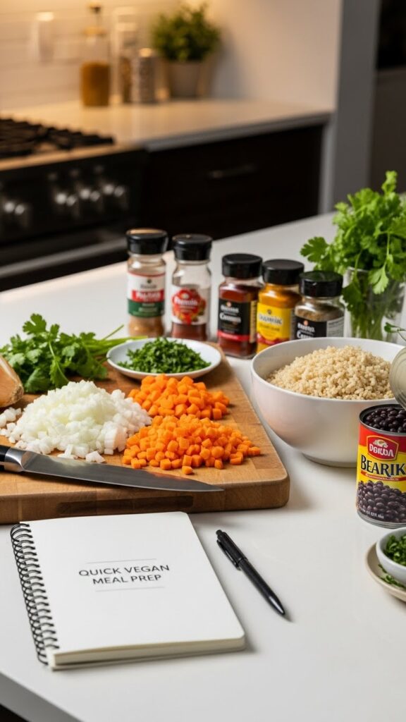 A: Meal prep is your best friend. On a less busy day, chop a few onions and bell peppers, cook a big batch of rice or quinoa, and rinse a few cans of beans. Having these components ready cuts active cooking time down to just minutes.