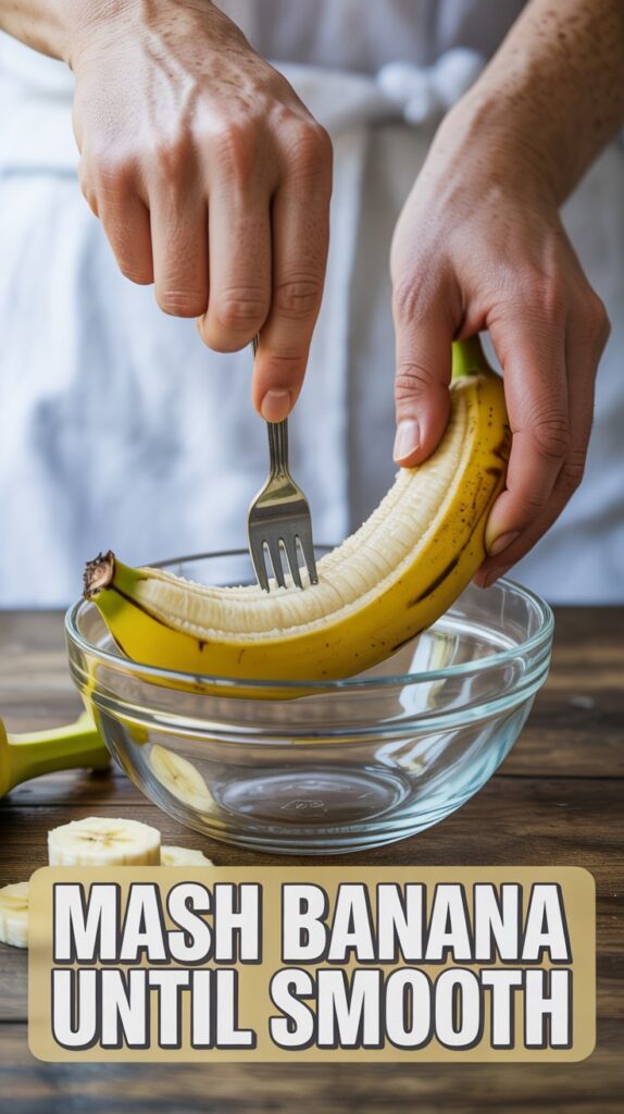 Peel that ripe banana and plop it into a medium bowl. Now, get mashing! You want to go at it with a fork until it’s a smooth, pudding-like consistency with no major lumps.