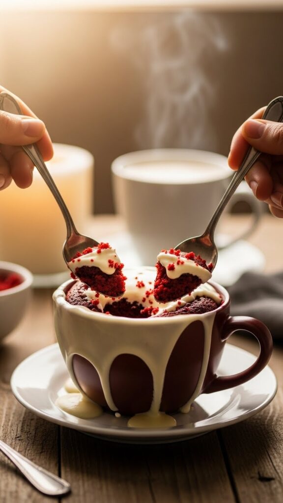 Your stomach just growled with a very specific, dramatic demand: a warm, decadent slice of red velvet cake. But your brain, the sensible (and slightly lazy) manager of your body, vetoed the idea of creaming butter for 20 minutes, dirtying every bowl you own, and waiting for a full-sized cake to bake. Who wins? You do. Because you’re about to make a Red Velvet Mug Cake for Two. In five minutes. With a fork and a mug. Crisis averted, cravings satisfied, hero status achieved. Now, let’s get to the good stuff.