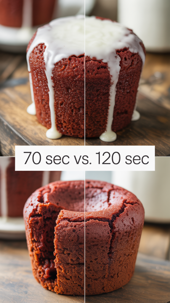 - Microwave Magic. Slide your mug into the microwave. Nuke it for 60-90 seconds. Start with 70 seconds. It should look set on top but still a tiny bit moist. If it looks wet, add 10-second bursts. DO NOT OVERCOOK. A slightly underdone center is a thousand times better than a dry, spongy hockey puck.
