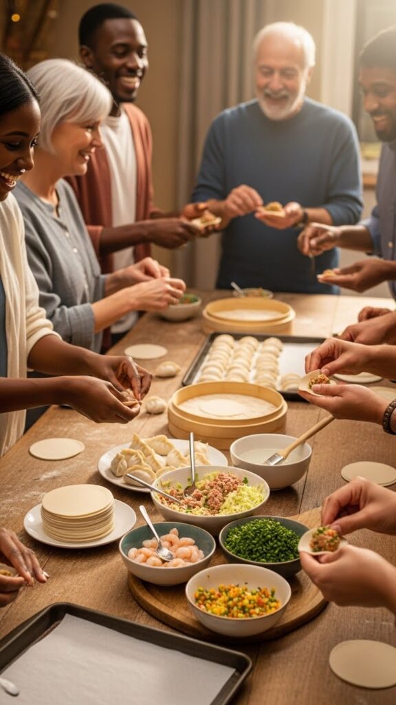 Place fillings, bowls of water for sealing, and trays in the center of a table. Let everyone fold their own. It’s fun, communal, and embraces the tradition of dumplings symbolizing wealth (they look like gold ingots!). Plus, you get help with cooking. Total win.