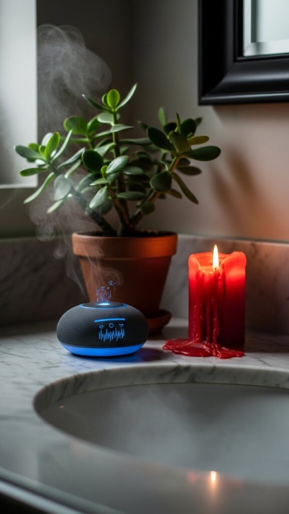 In the bathroom or entryway, use a speaker to play subtle, ambient sounds of light rain or a calm stream (water symbolizes wealth flow). It’s a next-level, soothing touch that subconsciously elevates the entire vibe.