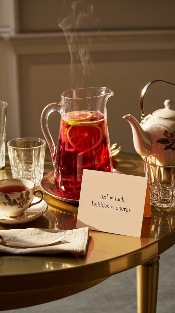 Skip the complicated cocktail menu. Create a Symbolic Sip Bar. Offer a prosperity punch (like a pomegranate ginger fizz—red for luck, bubbles for effervescent energy) and a pot of jasmine or oolong tea (for harmony and health).