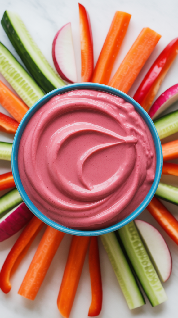 Short Hook / Why It’s Awesome → A fluffy, pink, ultra-creamy dip that turns eating vegetables into the main event. Finally.