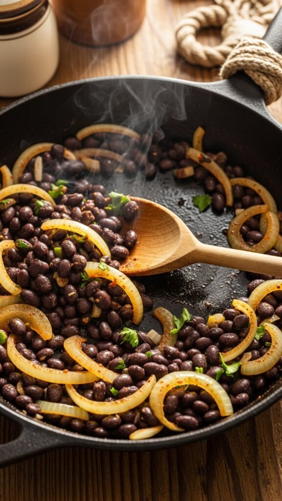Push the onions and garlic to one side of the skillet. Add the tomato paste, chili powder, cumin, and smoked paprika to the empty space. Toast the spices for 30-60 seconds. This “blooms” them, releasing their essential oils and creating a much deeper, richer flavor base for your Vegan Black Bean Tacos.