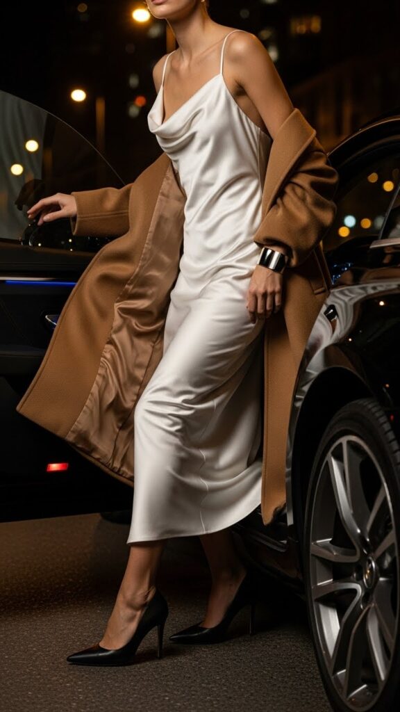 This is your moment for statement jewelry. A single, stunning cuff bracelet or dramatic earrings. Pair with sleek, pointed-toe heels or elegant strappy sandals. Drape a structured wool coat or a faux fur stole over your shoulders for the entrance. You’ll look modern, expensive, and undeniably chic.